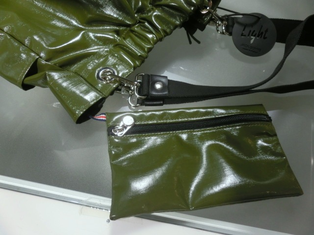 裏地は全色共通で鮮やかなグリーン、4つあるサイドポケットが便利です。